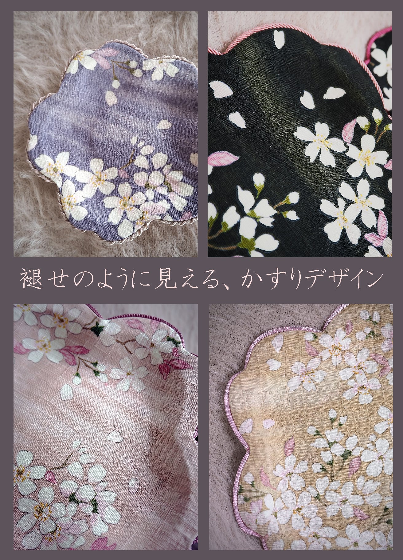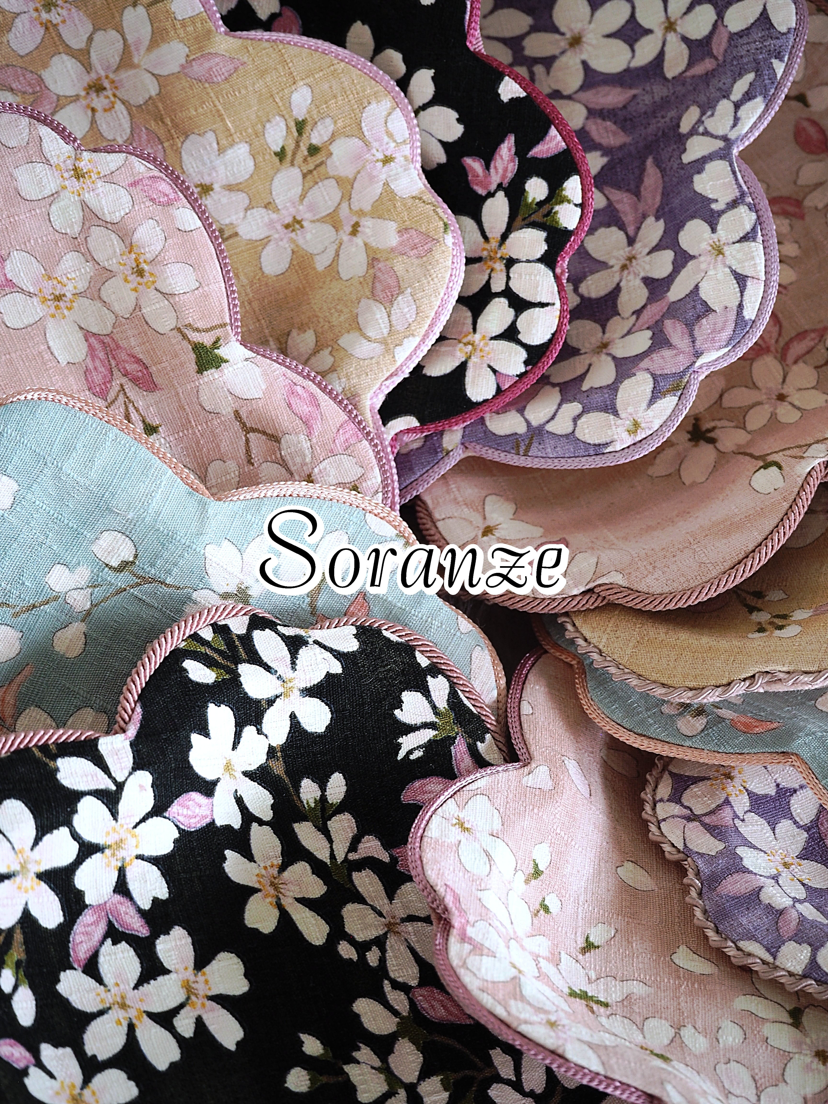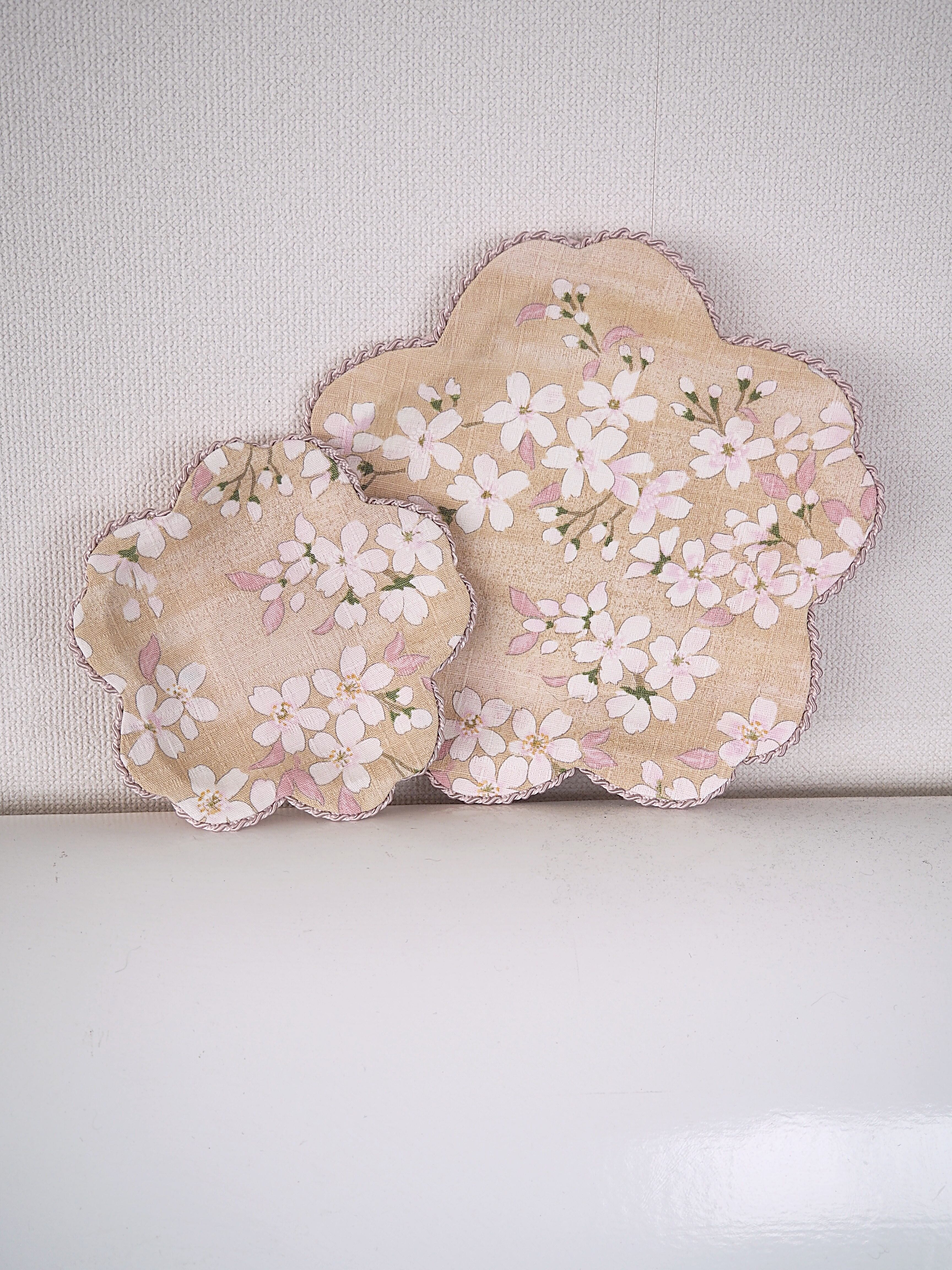 ふんわりカラーの桜柄ファブリックに包ま