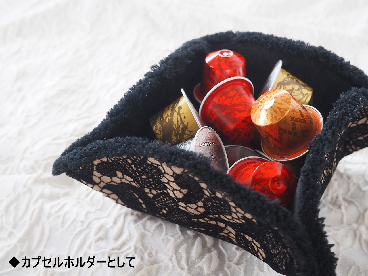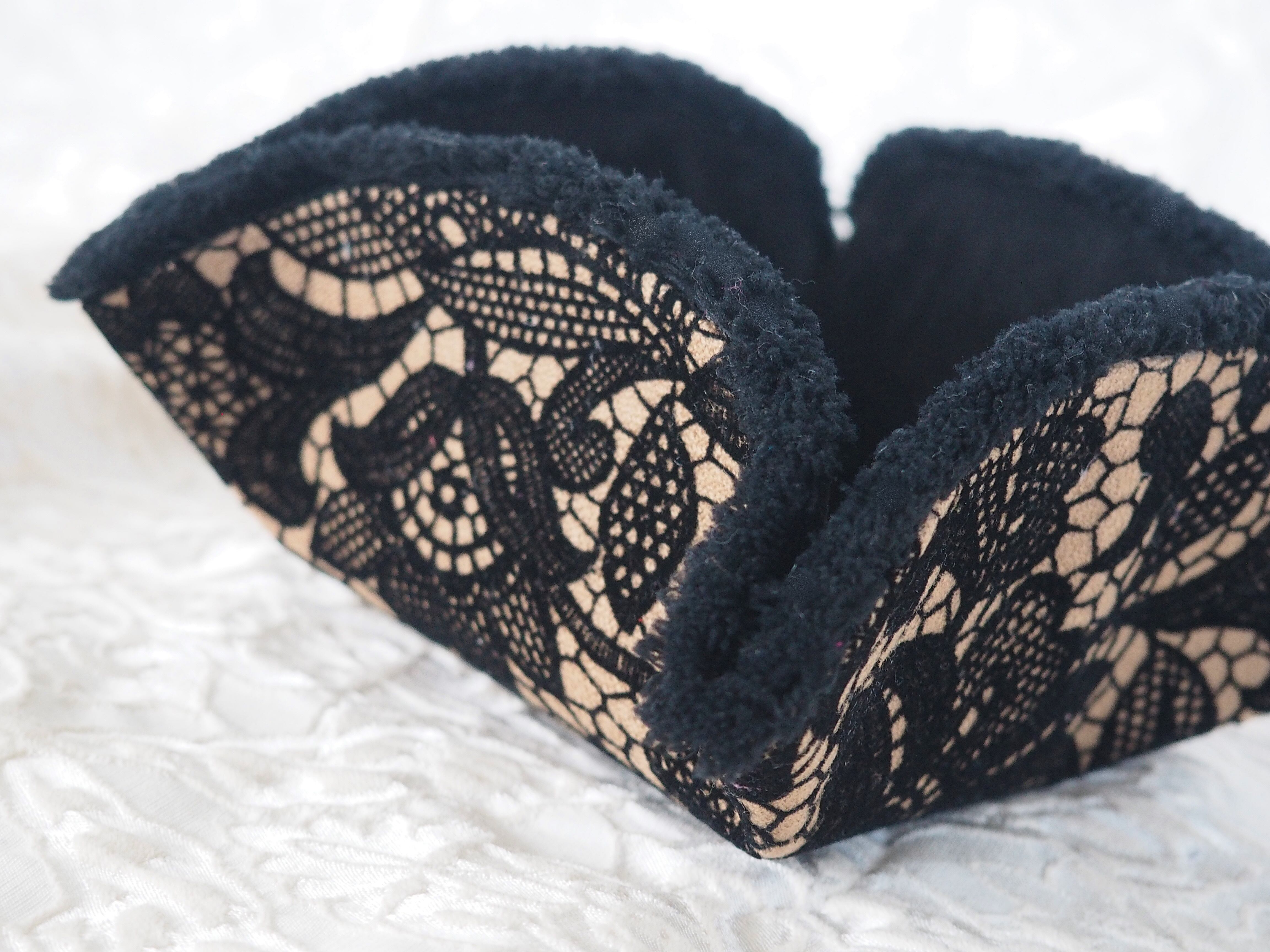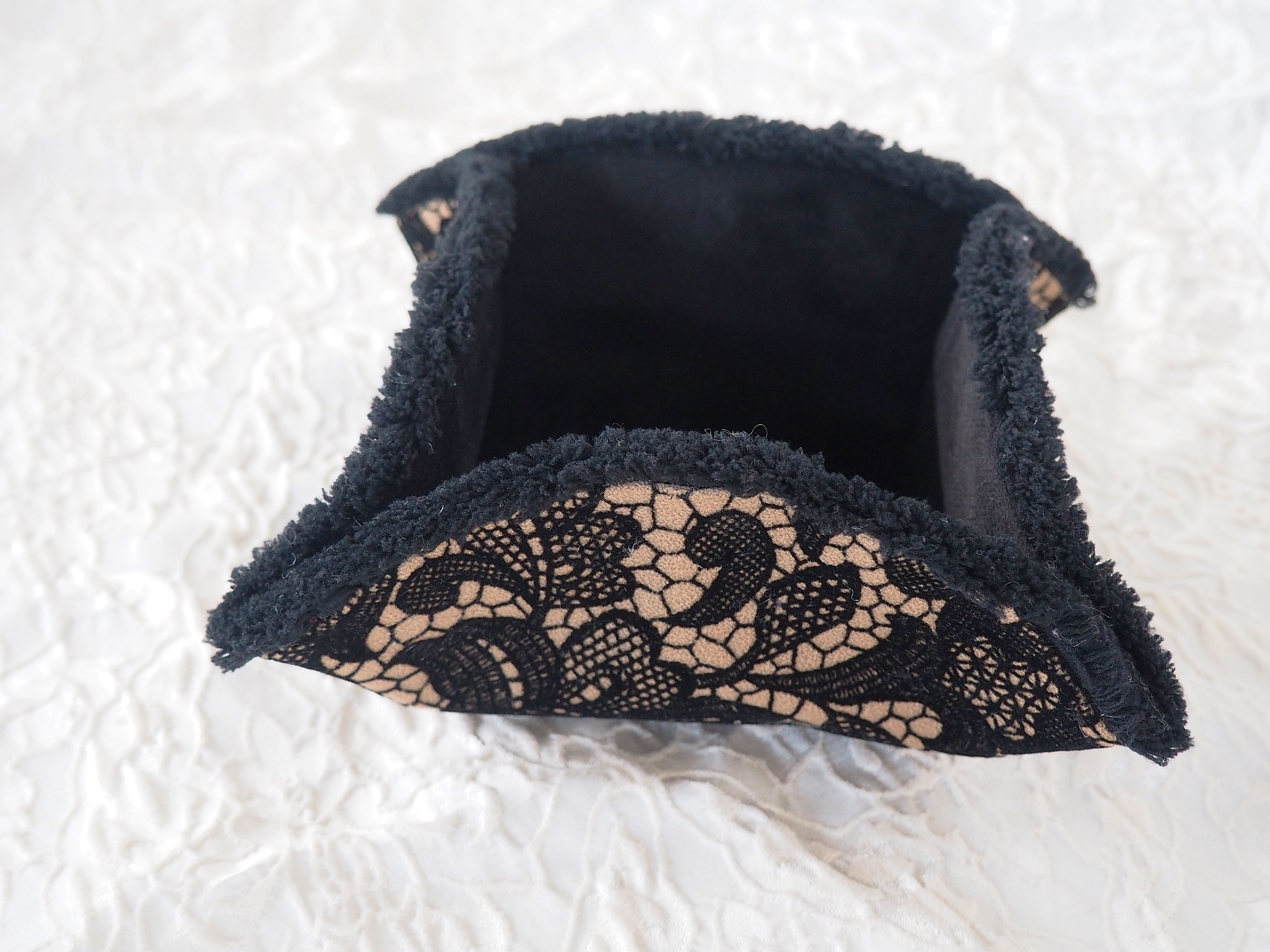 色 ●外面/黒ベージュウールレース